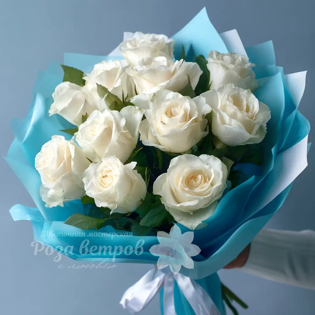 Уютный зимний мотив, в котором белые розы раскрываются особенно мягко. Этот букет символизирует спокойствие, искренность и надежду. Подойдёт для людей с утончённым вкусом.