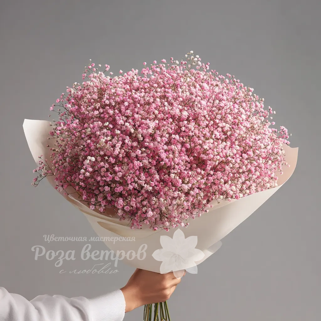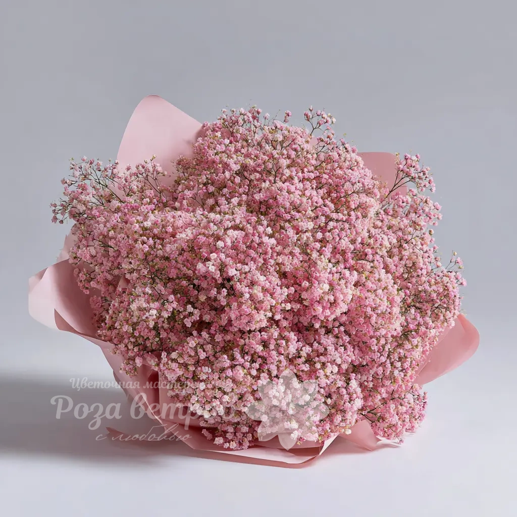 Нежный розовый оттенок делает этот букет особенно романтичным. Гипсофила создаёт ощущение воздушности и лёгкости. Идеален для признаний, сюрпризов без повода и подарков девушке.