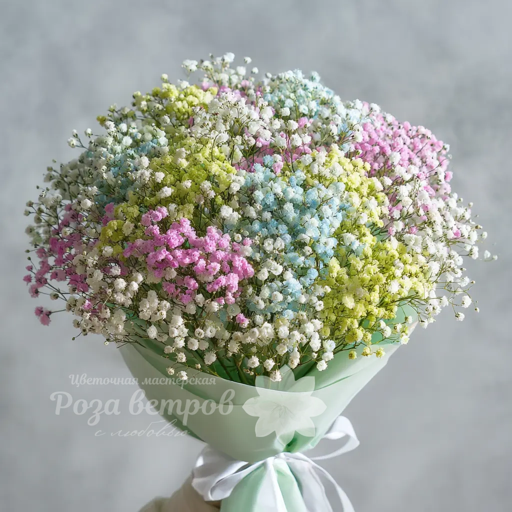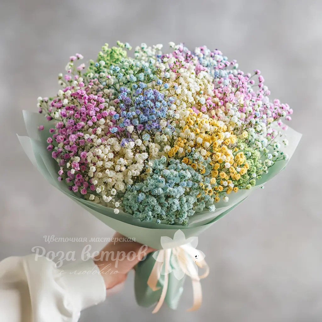 Элегантный букет для тех, кто предпочитает выразительные, но ненавязчивые решения. Гипсофила подчёркивает утончённость композиции и универсальность подачи.