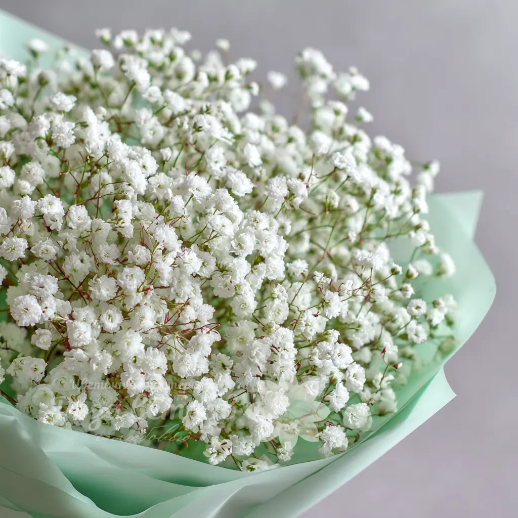 Букет в мягкой мятно-белой палитре. Лёгкая текстура и чистый цвет делают букет отличным выбором для свадеб, фотосессий и трогательных моментов.