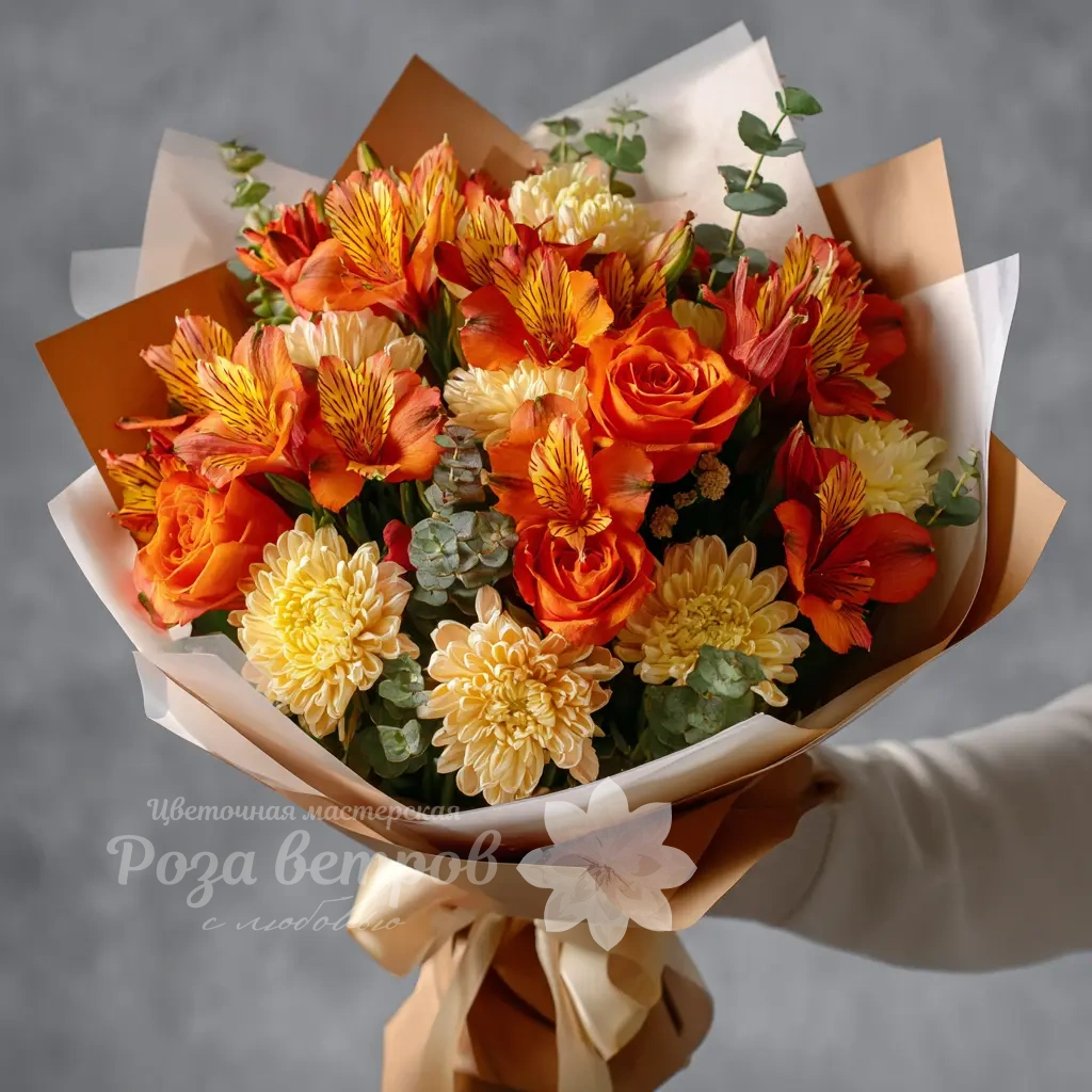 Яркие оттенки альстромерий в этом букете напоминают о жарких странах и насыщенной природе. Отличный вариант для летних праздников, отпускных встреч и эффектного комплимента.