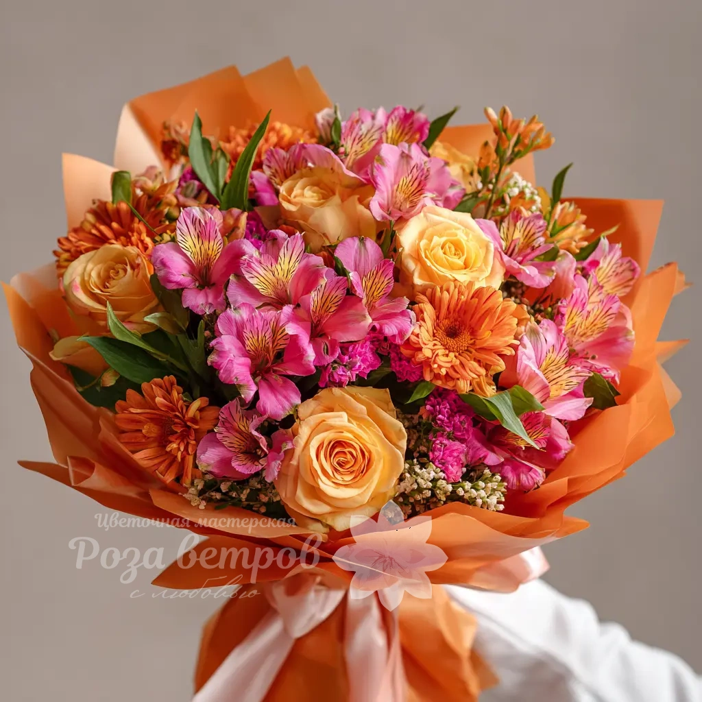 Яркая композиция с праздничным настроением. Альстромерии собраны так, чтобы выразить тепло, благодарность и хорошее настроение. Прекрасный выбор для дня рождения или поздравления с успехом.