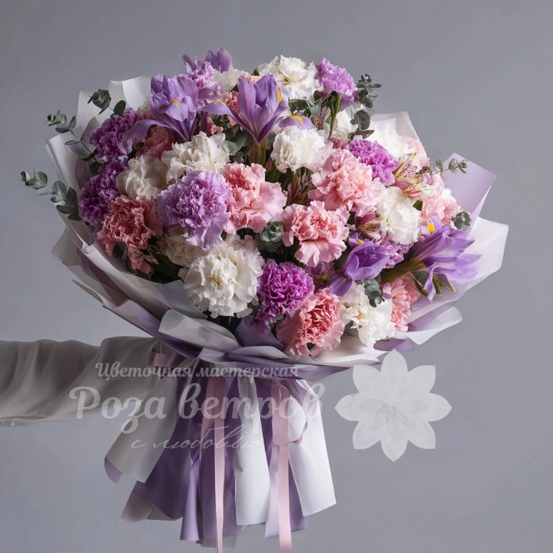 Идеально сбалансированное сочетание в букете, где нежные переливы цветов создают целостный образ. Каждый оттенок мягко подчеркивает красоту композиции, образуя живописное сочетание.