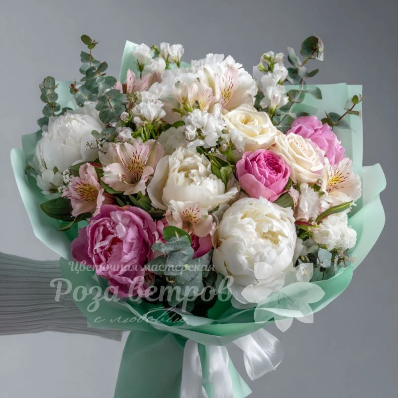 Воздушный букет из нежнейших пионов, словно облако в руках. Лёгкий, романтичный букет, который подходит для комплимента, свидания или фотосессии. Отличный вариант для поклонников минимализма и эстетики.