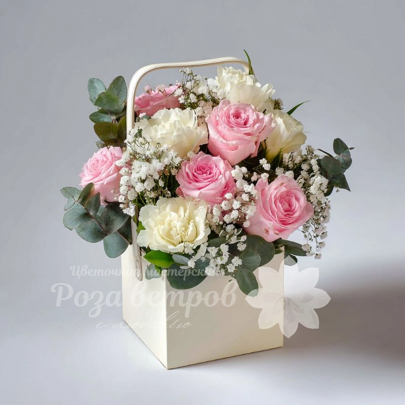 Яркая, как конфета, композиция в сумочке поднимает настроение с первого взгляда. Подойдёт для спонтанного подарка или тёплого жеста внимания.