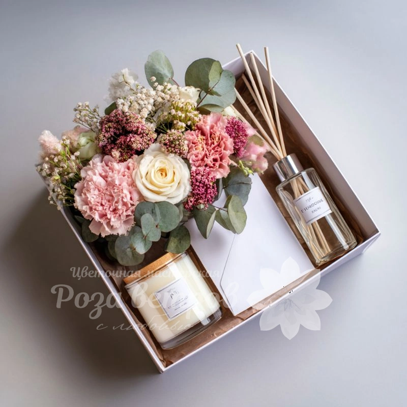 Этот набор, словно глоток чистого летнего воздуха, наполнит ваш дом лёгкостью и цветочной гармонией. Нежная флористическая композиция, интерьерная свеча и тонкий шлейф аромата из диффузора создадут атмосферу пробуждения и радости.