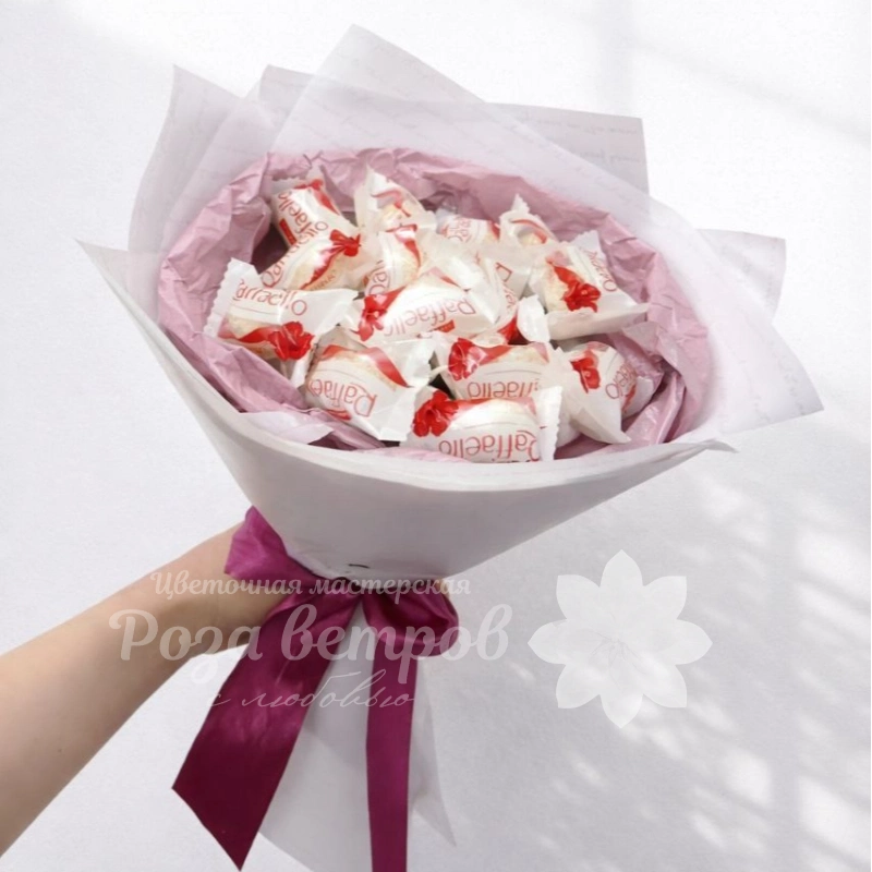 Описание букета Букет, созданный из конфет , станет прекрасным подарком для тех, кто любит сладкие сюрпризы. Нежные белые конфеты, оформленные в элегантную композицию и перевязанные атласной лентой, привнесут в любой праздник нотку изысканности и радости. Этот оригинальный букет порадует и удивит как детей, так и взрослых.