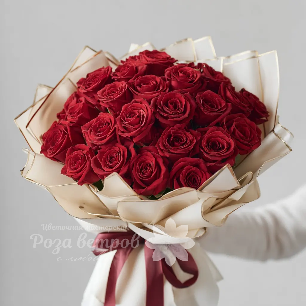Глубокий рубиновый оттенок лепестков в сочетании с лаконичной упаковкой создают насыщенное, выразительное настроение. Идеален для торжественного признания в чувствах. Яркий акцент в романтический день.